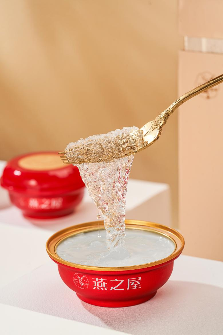燕之屋25年專注高品質燕窩,根植燕窩文化、專注燕窩生產,49道工序嚴苛把關、精工細作,實現(xiàn)碗燕·濃鮮款濃、鮮、純三大健康滋養(yǎng)特質,為消費者帶來夏日新滋養(yǎng)。碗燕·濃鮮款原料甄選東南亞優(yōu)質金絲燕燕窩,配料只含燕窩、冰糖、純凈水,天然滋養(yǎng)輕負擔。經反復實驗測試,采用121℃鮮萃工藝,密封燉煮,牢牢鎖住新鮮,不浪費一絲營養(yǎng)。經過高溫燉煮后的碗燕·濃鮮款滅菌徹底,產品0脂肪、0防腐劑、0增稠劑、0添加劑*(*指本產品生產過程中0%添加防腐劑山梨酸鉀、苯甲酸鈉,0%添加增稠劑瓊脂)。每一份碗燕·濃鮮款食用燕窩投料量不低于5克,燕窩酸含量不低于300mg,燕窩絲絲晶瑩,滿滿營養(yǎng)價值。作為宴席頭盤菜,碗燕·濃鮮款入口清爽濃醇,以濃、鮮、純喚醒味蕾,贏得“品鑒官”們的一致好評。
