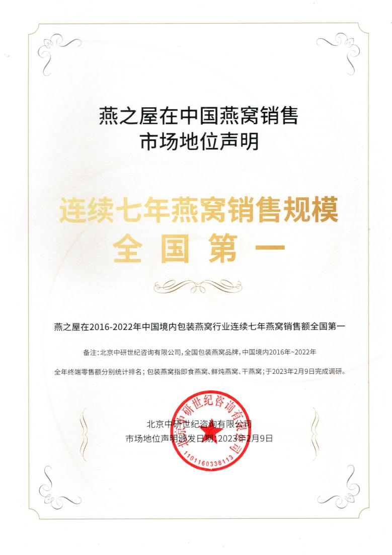 為滿足消費(fèi)者越來越多元的滋養(yǎng)需求,推動企業(yè)高質(zhì)量發(fā)展,燕之屋創(chuàng)新研制純燕窩產(chǎn)品、“燕窩+”產(chǎn)品及“+燕窩”產(chǎn)品三種類別多款燕窩產(chǎn)品,總共有250個SKU。憑借更健康、更安全、更營養(yǎng)、更便捷的產(chǎn)品屬性與優(yōu)勢,產(chǎn)品銷量連續(xù)七年全國第一。截至2022年,燕之屋已連續(xù)七年燕窩銷售規(guī)模全國第一*(*燕之屋在2016-2022年中國境內(nèi)包裝燕窩行業(yè)連續(xù)七年燕窩銷售額全國第一,備注:北京中研世紀(jì)咨詢有限公司,全國包裝燕窩品牌,中國境內(nèi)2016年-2022年全年終端零售額分別統(tǒng)計排名;包裝燕窩指即食燕窩、鮮燉燕窩、干燕窩;于2023年2月9日完成調(diào)研),高品質(zhì)、好口碑兼具,是名副其實(shí)的燕窩行業(yè)“領(lǐng)頭燕”。