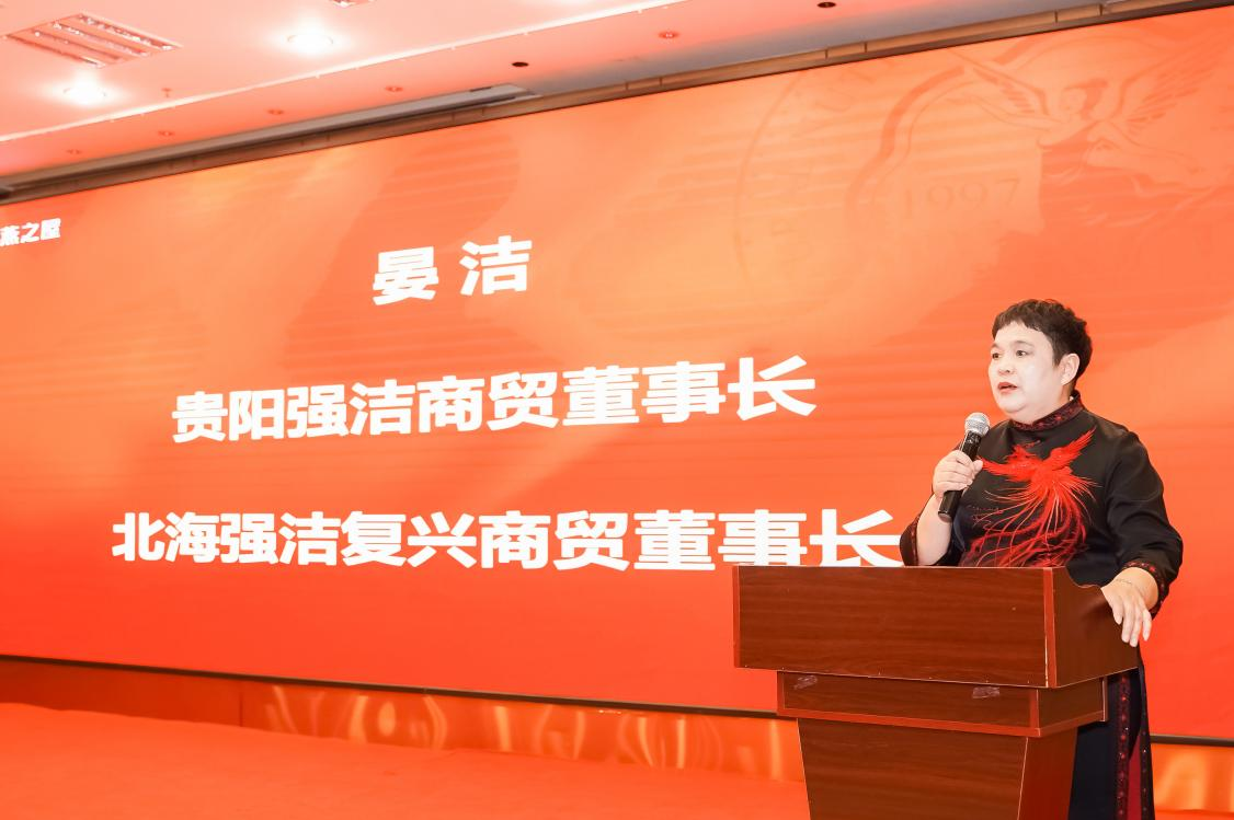 圖:貴陽強(qiáng)潔商貿(mào)、貴陽燕之屋商貿(mào)有限公司董事長晏潔發(fā)表致辭