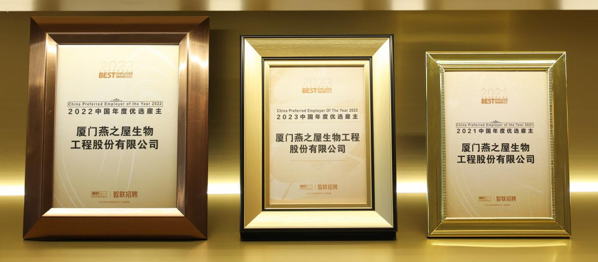 一直以來,燕之屋堅持創(chuàng)新實干、行穩(wěn)致遠,樹立專業(yè)、活躍、有愛的企業(yè)形象,打造企業(yè)與員工之間良好、和諧的勞動關(guān)系,彼此信任、相互成就。2022年至2023年,燕之屋陸續(xù)被授予“福建省2020-2021年度省級勞動關(guān)系和諧企業(yè)”、2023年度廈門市“雙愛典范”企業(yè)稱號。此次榮獲2023中國年度優(yōu)選雇主榮譽,再度提升企業(yè)口碑聲譽,彰顯企業(yè)實力與魅力。