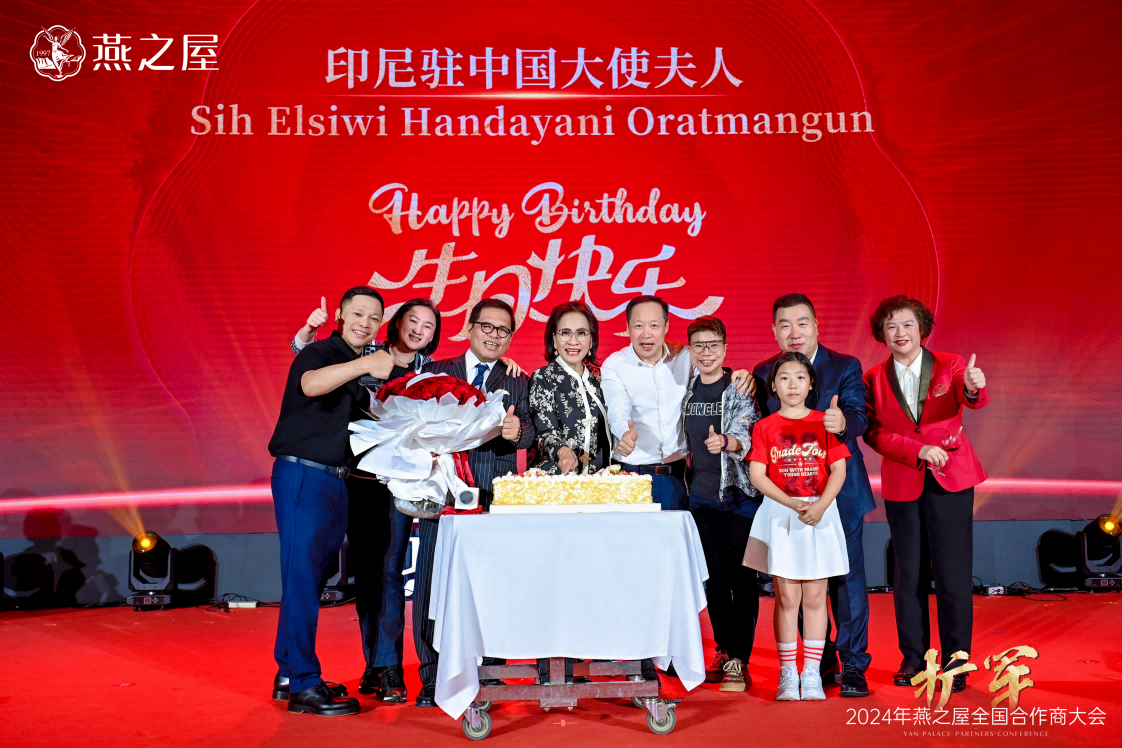 當天,燕之屋生態(tài)產(chǎn)業(yè)園同步開園,與燕之屋全國合作商大會的召開可謂雙喜臨門。燕之屋創(chuàng)始人、董事長黃健在祝酒詞中說道:“今天是一個值得銘記的日子,是燕之屋發(fā)展歷程中新的里程碑,我們共同見證了燕之屋生態(tài)產(chǎn)業(yè)園的盛大開園,在全國合作商大會上共同探討了行業(yè)趨勢、分享了成功經(jīng)驗,進一步鞏固了我們的合作關(guān)系。我相信,在未來的日子里,我們將攜手并進、共創(chuàng)輝煌。”此外,大會當日亦是印尼駐中國大使夫人“依布魏魏可歐拉蠻古”的生日,燕之屋為她送上生日蛋糕與祝福。晚宴上,精彩紛呈的歌舞表演“碗”美呈現(xiàn)撼動人心的視聽盛宴,使得在場嘉賓情緒高漲,現(xiàn)場氛圍熱烈非凡。