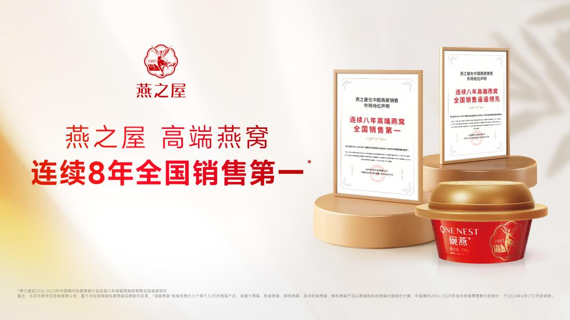 燕之屋連續(xù)八年高端燕窩全國銷售穩(wěn)居第一,詮釋頭部品牌實(shí)力