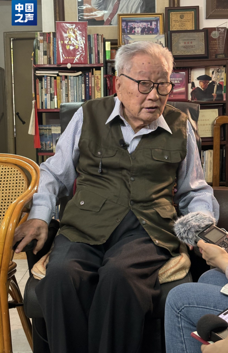 圖:105歲的夏書章在家中接受記者采訪