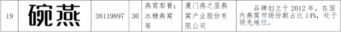 圖:燕之屋“碗燕”商標(biāo)注冊(cè)證